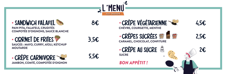 Des foods-truck locaux nous accompagnent chaque années pour vous offrir une plus grande diversité de repas, crêpes, tartiflette, hot-dogs, gaufres...